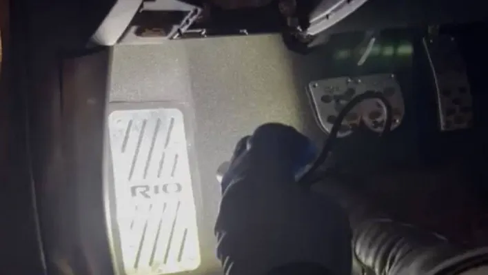 Araçta detaylı inceleme yapan polis, pedalların olduğu bölümdeki ayak koyma yeri parçasının orjinal olmadığını fark etti. Bunun üzerine mıknatıslı kulaklığı aracın çeşitli yerlerine sürten yunus timi, kulaklık kutusunu sol direk diye tabir edilen emniyet kemerinin bulunduğu kısmın alt aksamına sürttü. O esnada aracın fren pedalının sol kısmında bulunan yay mekanizmalı zula diye tabir edilen gizli bir bölme açıldı.