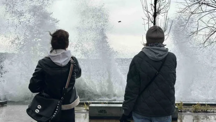 İstanbul'da etkisini sürdüren lodos nedeniyle sahil şeridinde dev dalgalar oluştu. Dalgalar kıyı aşarken, fırtınaya aldırış etmeyen vatandaşlar o anları görüntüledi.