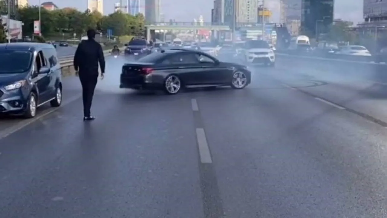 Geçtiğimiz gün, düğün konvoyuna katılan bir grup araç sürücüsü, Maltepe E-5 karayolu üzerinde araçlarını durdurarak yol kesti. Ardından drift atmaya başladı. Diğer araç sürücüleri ise korna çalarak duruma tepki gösterdi. Bir süre sonra olay yerinden ayrılan araç sürücüleri, bu kez de Ataşehir TEM otoyolu üzerinde yol kesti. Plakasız araçlarla uzun süre drift atan sürücüler bir süre sonra olay yerinden ayrıldı. Trafiği birbirine katan sürücülerden biri o anları sosyal medya hesabında İstanbul’u yakmaya geldik’ notuyla paylaştı. o anları cep telefonu kamerasına yansıdı.