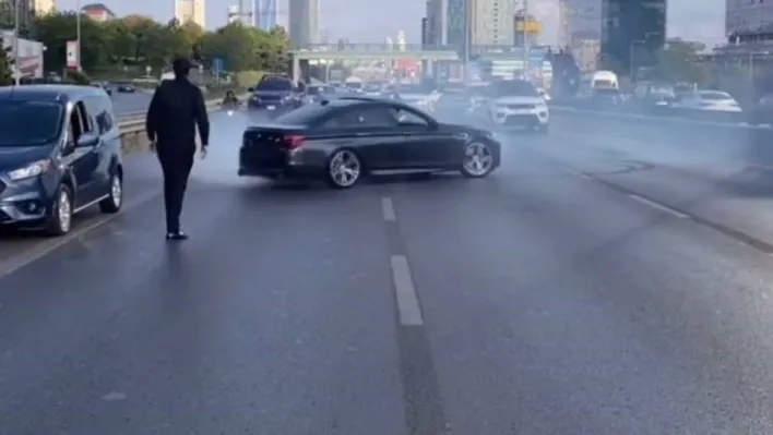 İstanbul'da düğün konvoyu yapan bir grup sürücü, önce Maltepe E-5 karayolu üzerinde yolu kesip drift attı. Bir süre trafikte ilerleyen grup bu kez de Ataşehir Tem Otoyolu üzerinde yol kesti. Araç sürücüsü o anları sosyal medya hesabında ' İstanbul'u yakmaya geldik' sözleriyle paylaştı.