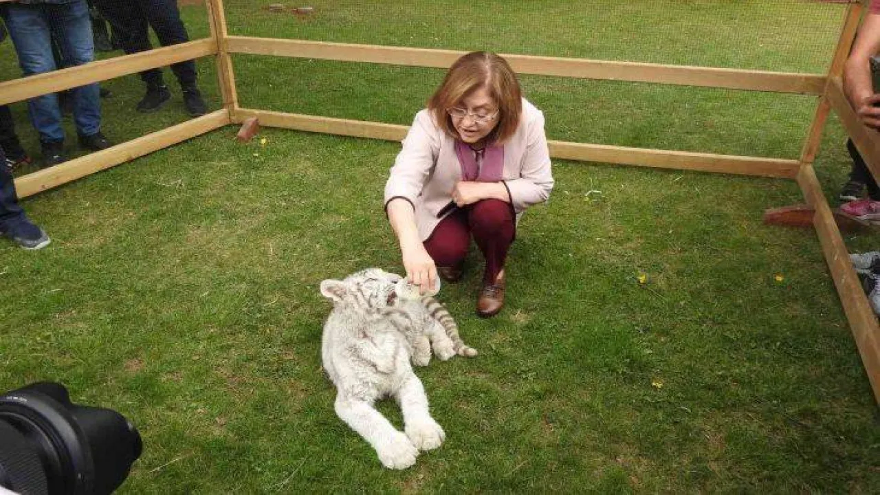 Kartopu ile tanışması sonrası konuşan Başkan Fatma Şahin, “Büyük bir heyecanla ailemizin yeni üyesiyle tanışmak için geldik. Bende çok beğendim buz mavisi gözleriyle çok özel bir cins. Dünyada çok aza bulunan türlerden bir tanesi. Bu aile kaplanları, aslanlarıyla yaklaşık 700 çeşidi olan çok özel bir aile. Binlerce çocuğumuz aileleriyle bu aileyi ziyarete geliyor. Böyle bir beyaz kaplanın burada olması buz mavisi gözleriyle ailemizi güçlendirdi. Daha önce gördüm diyen vatandaşlara gelin birde Kartopumuzu görün diyoruz. Gelsinler buz mavisi güzel renklerini görsünler. Bu kaplan bu aileye inşallah uğurlu gelir. Çünkü bu aile çok üreten doğum oranlarıyla çok özel bir aile. Avrupa’da 3’üncü dünyada 4’üncü sıradayız çeşit ve sayıda. Herkesi, Türkiye’de ki bütün çocukları yeni Kartopumuzla tanışmaya davet ediyorum” ifadelerini kullandı.