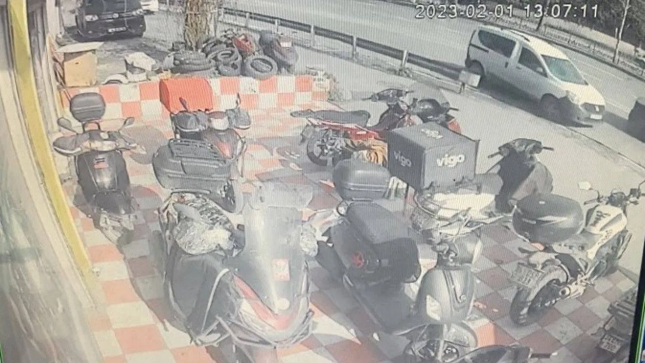 Kaza sonucu otomobil takla atarak ters dönerken, motosiklet ise hafif ticari araçla duvar arasında sıkıştı. Sürücü Dikmen ise kazadan burnu bile kanamadan kurtuldu. Kaza anı güvenlik kameralarına yansıdı.