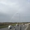 İstanbul'da etkili olan kısa süreli yağışın ardından gökyüzünde beliren gökkuşağı, trafikteki sürücülere adeta görsel şölen sundu.