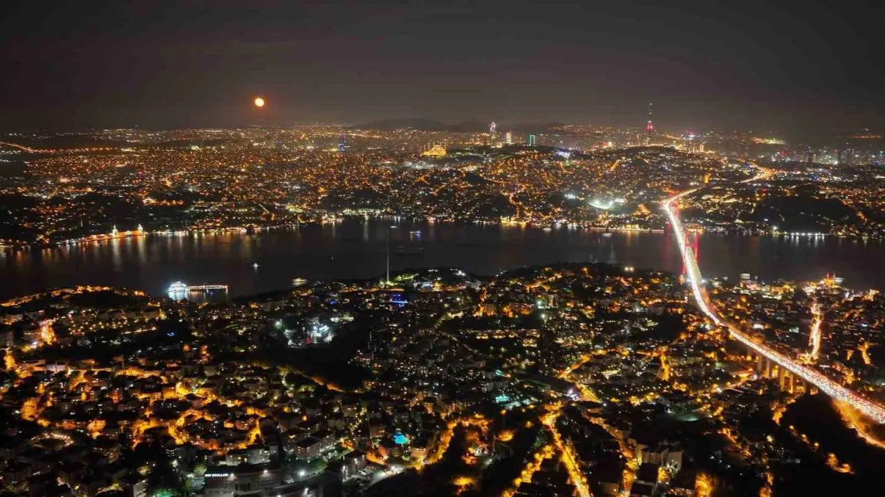 İstanbul'da drone ile çekilen süper ay şehrin manzarasıyla birlikte kartpostallık görüntüler oluşturdu. Çamlıca Kulesi, 15 Temmuz Şehitler Parkı ve Çamlıca Camii ışıklarıyla birlikte bütünleşen süper ay görenleri kendine hayran bıraktı.