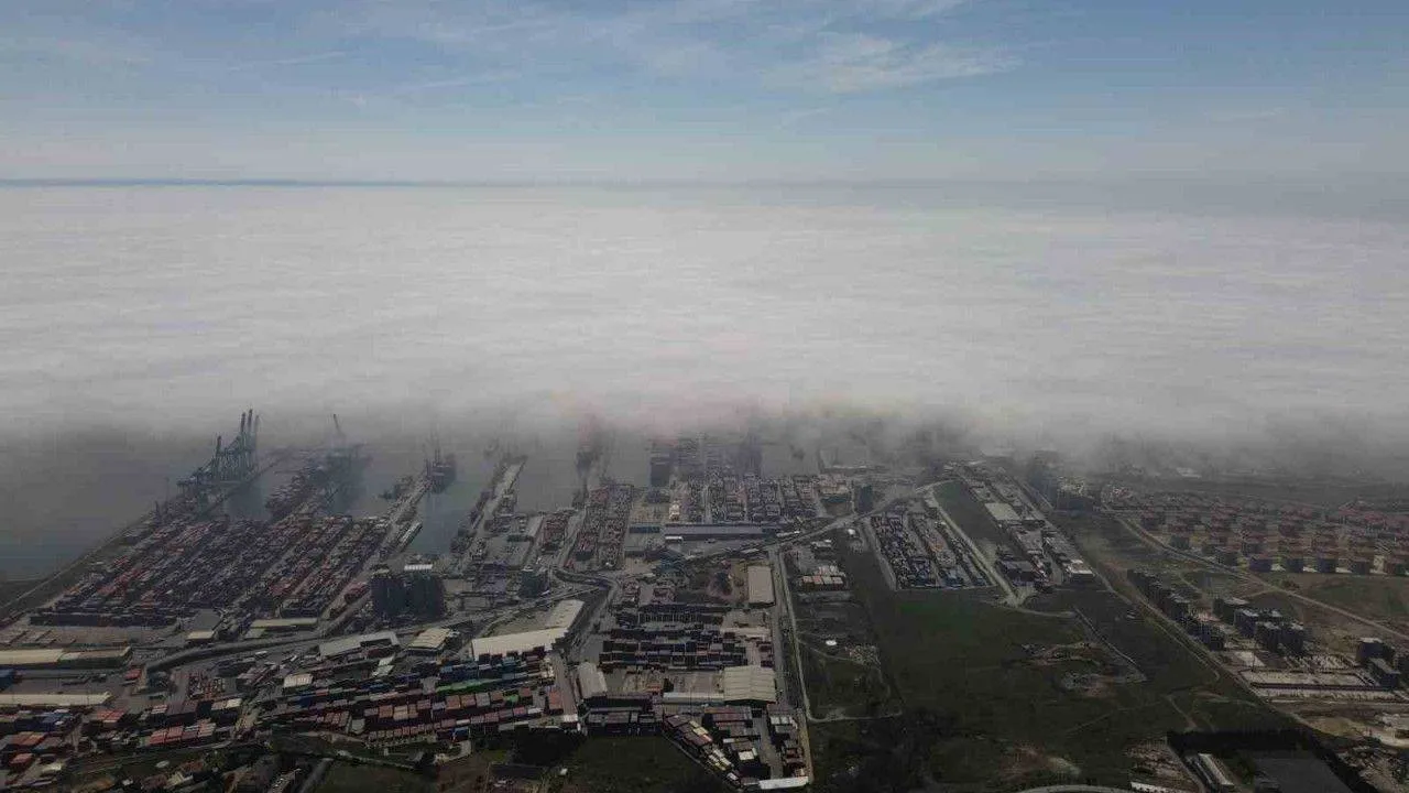 İstanbul’da sabah saatlerinde sis etkili oldu. İstanbul Boğazı’nın kuzey kesimlerinde yoğun olan sis, şehir merkezine doğru ise etkisini yitirdi. Beylikdüzü’nde sabah saatlerinde dron ile havadan çekilen görüntülerde, adeta bir sis denizi oluştuğu görüldü. Havadan çekilen o anlar kartpostallık görüntüler oluşturdu. Ambarlı Limanı ve Beylikdüzü Sahil kesimlerinde yoğunluğu azalan sis dron ile görüntülendi.