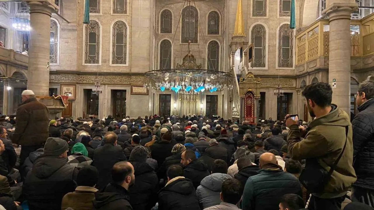 Diyanet İşleri Başkanı Ali Erbaş’ın çağrısı üzerine vatandaşlar Eyüpsultan Cami’sine akın etti. İçeride yer bulamayan vatandaşlar soğuk havaya rağmen avluya serilen kilimlerin üzerinde namaz kıldı.