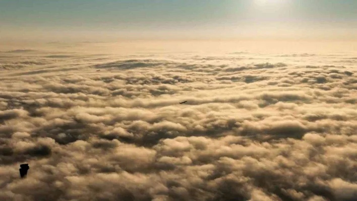 İstanbul'da sis bulutlarının içinden çıkan uçaklar, havadan görüntülendi
