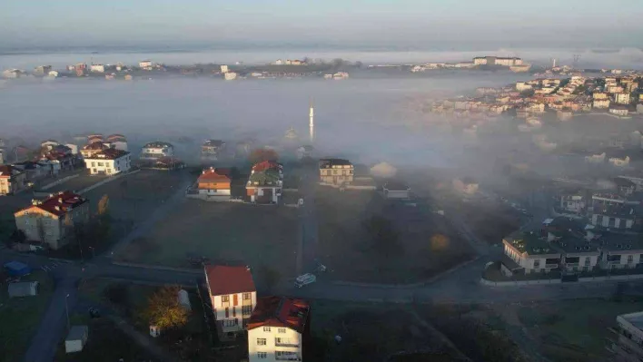 Arnavutköy'de sabahın ilk ışıkları ile birlikte etkili olan sis adeta ilçenin üstünü kapladı. Sis bulutları havadan görüntülendi.