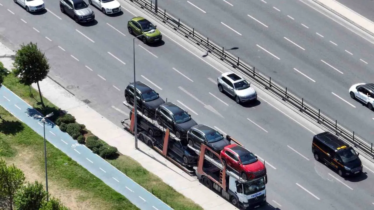 Togg yüklü tırlar İstanbul’a giriş yaptı. Togg dolusu tırlardan birirnin İstanbul yolculuğu havadan görüntülendi.