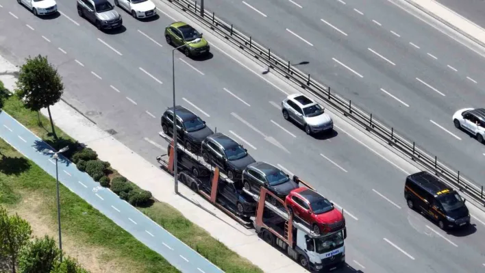 Togg yüklü tırlar İstanbul'a giriş yaptı. Togg dolusu tırlardan birirnin İstanbul yolculuğu havadan görüntülendi.