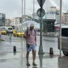 İstanbul'da yağmur etkili oldu: Taksim Meydanı ve çevresinde bazı vatandaşlar şemsiye açtı