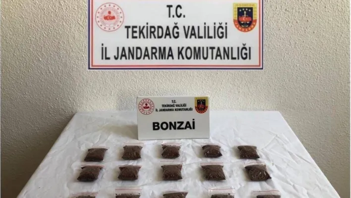 İstanbul'dan Tekirdağ'a uyuşturucu getirileceğinin duyumunu alan jandarma, yakaladığı şahıstan 16 adet poşet içerisinde bonzai ele geçirdi.