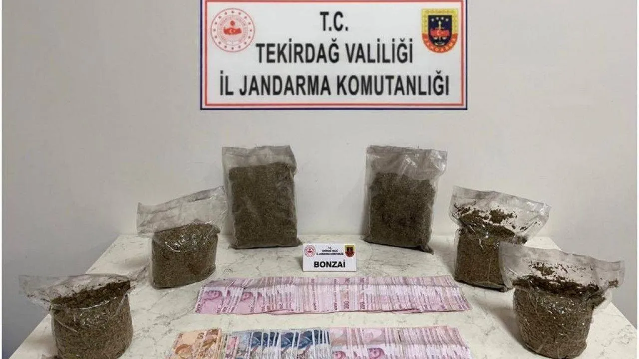 Çerkezköy ilçesine bağlı Kızılpınar Mahallesi’ne İstanbul’dan uyuşturucu madde getirileceği yönünde alınan duyum üzerine Tekirdağ İl Jandarma Komutanlığı, İstanbul-Çerkezköy D-567 Karayolu üzerinde uygulama yaptı. Uygulamada yapılan yol kontrolünde; F.M., O.Ö., F.Ü. ve Ö.A isimli şüphelilerin üzerlerinde, kullandıkları araçlarda ve sonrasında ikametlerinde yapılan aramada; 3 bin 150 gram bonzai, 5 gram esrar, 6 adet uyuşturucu kullanma aparatı ve suçtan elde edildiği değerlendirilen 40 bin 835 TL ele geçirildi. Şüpheliler gözaltına alınarak, haklarında işlem başlatıldı.