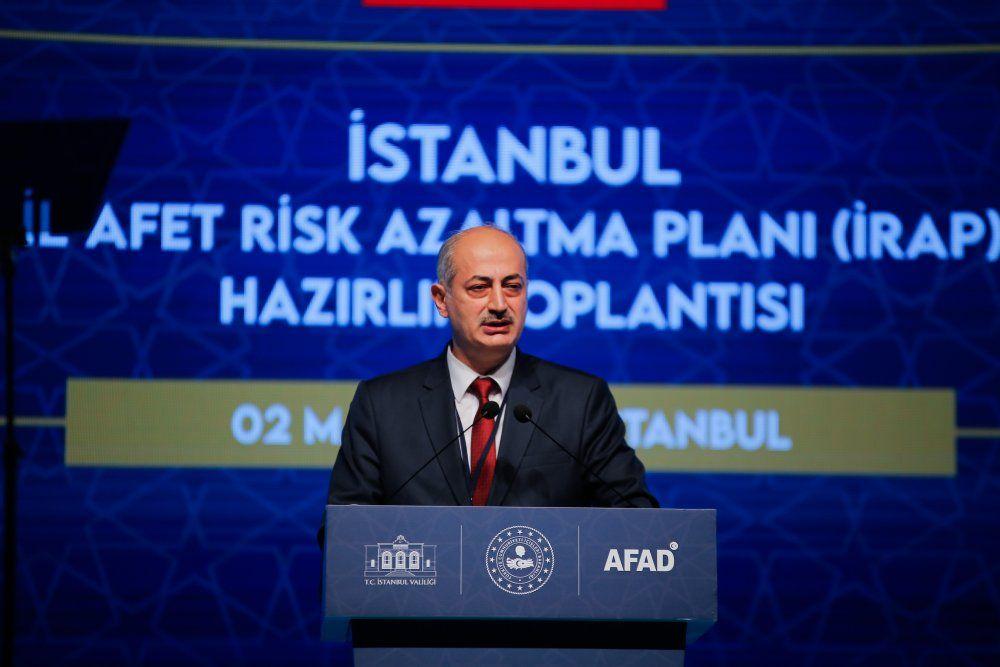 Vali Yerlikaya, "2021 yılında İçişleri bakanlığımız bu yılı Afet eğitim yılı olarak ilan etmiştir. Biz, tüm vatandaşlarımızın, kamu kurum ve kuruluşlarımızın ve çalışanlarımızın afetlere karşı farkındalığını arttırmak için, eğitimler planladık. Bu süreçte, yazılı ve görsel basının yanında, sosyal medyanın da devreye girmesiyle şehrimize, afet farkındalık eğitimi vermeyi hedefliyoruz. Bu noktada; çalışmalarımıza başladık. İl AFAD Müdürlüğümüz koordinasyonunda; şehrimizde afet risklerini dikkate alarak, afet öncesi riskleri ortadan kaldırmayı, buna yönelik eylem ve sorumluları belirleyen, İl Afet Risk Azaltma Planı’nın yani İRAP’ın, yapım süreci ilgili kurum ve kuruluşlar, Üniversiteler ve STK’ların katılımıyla başlatıldı. İRAP sayesinde, bireylerin, işletmelerin, toplulukların, sektörlerin, sağlık ve ekonomiyle ilgili afet temelli can ve mal kayıplarının azaltılmasını hedefliyoruz. Yani, daha dirençli kentler oluşturma yolunda, çok önemli bir adım atmış oluyoruz. İstanbul’umuzun fiziksel, sosyal, tarihi, kültürel ve çevresel varlıklarımızın korunmasını ve tüm kayıplarımızı en aza indirmeyi amaçlıyoruz. Bilindiği gibi afet öncesinde yapılan tüm çalışmaların maliyeti 1 iken, afet sonrası müdahale ve iyileştirmeyi kapsayan çalışmaların maliyeti 7’dir. Can kaybı ve gözyaşı hariç. Sizlerin katılımlarıyla oluşturulacak, teknik ve destek kurullarımız aracılığıyla; şehrimizdeki bütün kurumlarımız tarafından yapılacak Tehlike ve risk değerlendirmesi ile mevcut durumu analiz edecek, afet risk azaltma amaç, hedef ve eylemlerimizi belirleyeceğiz. Böylece İRAP başta büyük İstanbul depremi olmak üzere ister doğal, ister insan, ister teknoloji kaynaklı olsun, yaşanabilecek muhtemel afet riskleri ve onların olumsuz sonuçlarını azaltmak için, neler yapılacağını önceden tek tek tanımlamış olacak. İRAP çalışması, şehrimiz için hayati öneme sahip. Hep birlikte göstereceğimiz, ortak akıl, yakın işbirliği, sabırla, sebatla, bu planı hazırlayacak ve şehrimizle paylaşacağız" ifadelerini kullandı.