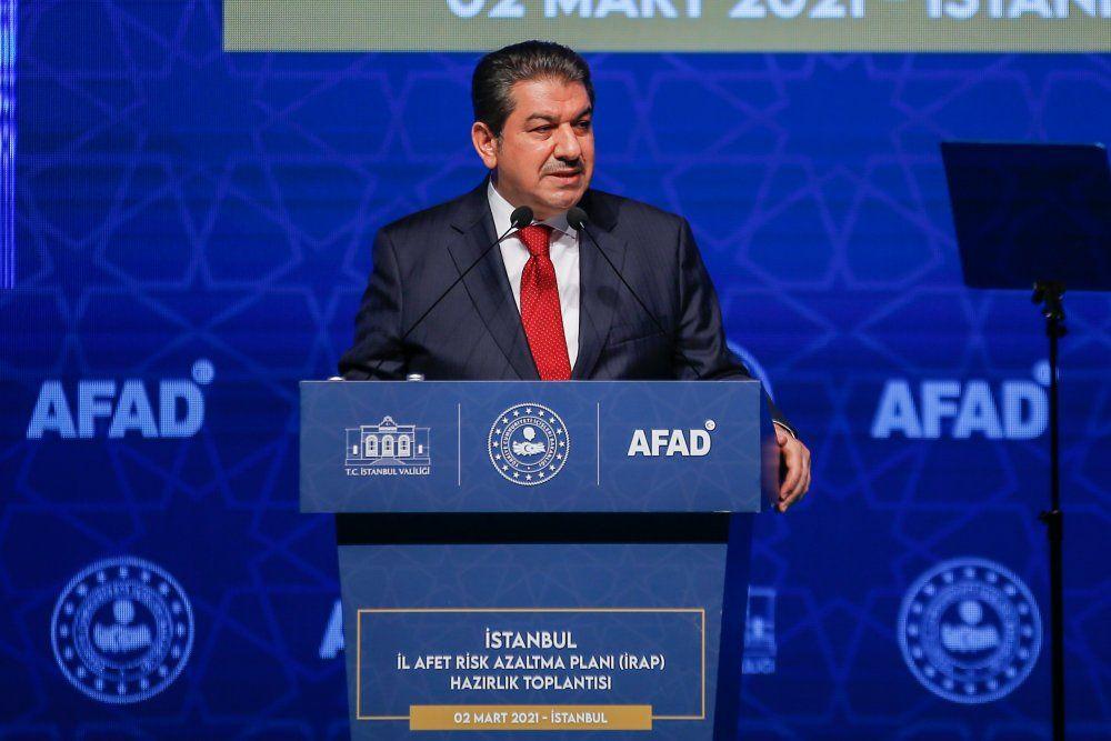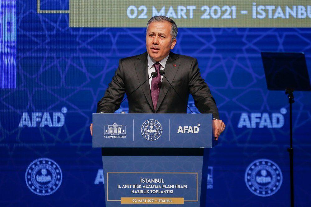 Toplantıda konuşma yapan İstanbul Valisi Ali Yerlikaya, "26 Eylül 2019 tarihindeki 5.8 Silivri depreminden, 2020 yılının sonuna kadar İstanbul olarak, deprem anı ve sonrasında yapılan çalışmaları paylaşmak istiyorum. Türkiye Afet Müdahale Planı (TAMP) kapsamında İstanbul’da 27 çalışma grubu ile toplam 565 toplantı yapıldı. Bu toplantılarda; kurumlar arası koordinasyon ve işbirliğinin sağlanması, yerel düzeyde operasyon planlarının geliştirilmesi ve kurumsal kapasitenin arttırılmasına yönelik, değerli kazanımlar elde edildi. Bu toplantıların 11’ini, Sayın bakanımızın başkanlığında yaptık. Tüm ilçelerimizde, AFAD Merkezleri kurulmasına başladık. Geçen yıl, 25 ilçemizde İlçe AFAD Merkezi’nin kurulumu tamamlandı. Geri kalan 14 ilçemizin de, bu yıl Mayıs ayı sonuna kadar kurulumu tamamlanmış olacak. Yine geçen yıl, ‘mahalle irtibat merkezleri’ kurulumunu başlattık. Bu güne kadar, 22 ilçemizde, 500 irtibat merkezi kurduk. Mayıs sonuna kadar, tüm mahallelerimizde bu kurulumlar tamamlanacak. Bu irtibat merkezlerimizde, afet sonrasında profesyonel arama kurtarma ekiplerimiz sahaya intikal edene kadar, gönüllüleri koordine edecek ve vatandaşlarımıza doğrudan yardım edebileceklerdir. Silivri depremine kadar ilimizde 2 bin 900 toplanma alanı bulunuyordu. AFAD il müdürlüğümüz koordinasyonunda; il jandarma komutanlığımızın özverili çalışmalarıyla bu sayı bugün itibariyle 5 bin 599’a çıktı. Ayrıca, bu toplanma alanlarında kişi başına düşen alan miktarı; 1.29 metrekareden, 3.36 metrekareye yükseldi. Afet ve acil durumlara ilişkin hizmet standartları ve akreditasyon esaslarını belirleyen yönetmelikten hemen sonra; ilimizde arama kurtarma hizmeti veren 3 STK’nın akreditasyon süreci tamamlandı. Ayrıca 4 STK’nın akreditasyon süreci devam ediyor. Afet anında görev almak isteyen gönüllü sayısı Silivri depreminden önce 5 bin 366 iken, 2020 yılı boyunca, AFAD il müdürlüğümüzün gayretleri sonucunda gönüllü sayısı 59 bin 210’a yükseldi. AFAD gönüllüsü olan vatandaşlarımıza, gönülden teşekkür ediyorum" dedi.