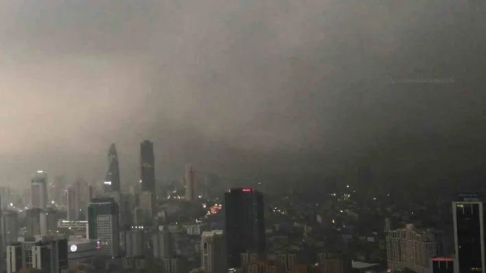 İstanbul’da sabah saatlerinde etkili olan güneşli hava öğleye doğru yerini sağanak yağışa bıraktı. Sağanak yağıştan hemen önce yağmur bulutları bir anda şehrin üstünü kapladı. Gündüz adeta geceye döndü. Sağanak yağışın etkili olduğu megakentte o görüntüler Çiğdem Kökcü isimli vatandaş tarafından Ataşehir’de cep telefonu kamerasıyla kaydedildi.