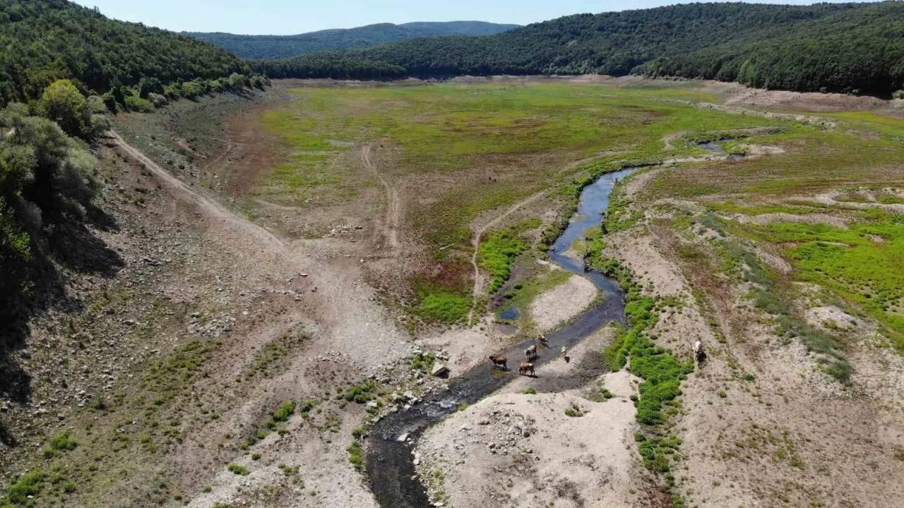 Hava sıcaklıklarının mevsim normallerinin üzerinde seyretmesi sebebiyle İstanbul’un su ihtiyacını karşılayan 10 baraj son 9 yılın en düşük seviyelerine kadar gerilerken, Kırklareli’nde bulunan Kazandere ve Papuçdere Barajlarında artık hayvanlar otluyor.