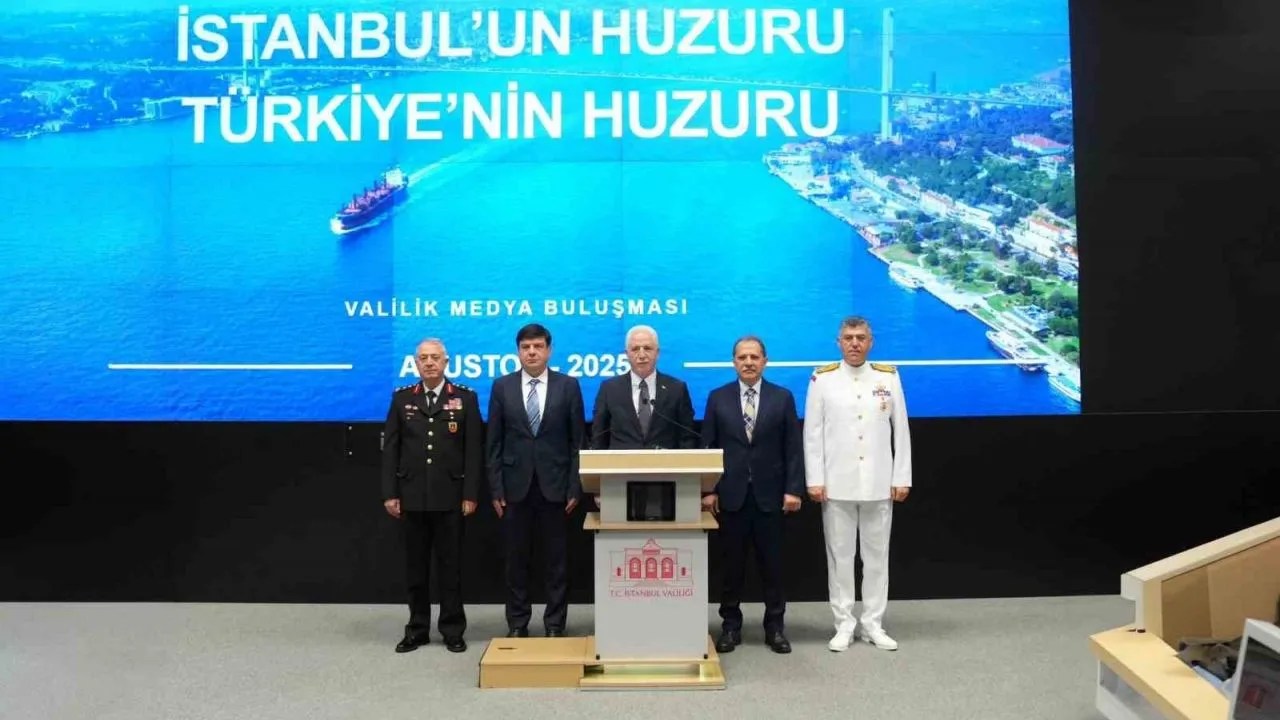 İstanbul Valisi Davut Gül, AFAD İstanbul İl Müdürlüğünde düzenlenen basın toplantısında 2025 yılının ilk 7 ayında meydana gelen asayiş olaylarının verilerini paylaştı. Vali Davut Gül’e Vali Yardımcısı Dr. M. H. Nail Anlar, İl Jandarma Komutanı Korgeneral Yusuf Kenan Topcu, İl Emniyet Müdürü Selami Yıldız ile Sahil Güvenlik Marmara ve Boğazlar Bölge Komutanı Tümamiral Serkan Tezel eşlik etti.