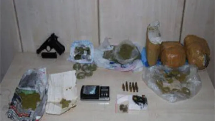 200 Özel Harekat Timi'nin destek verdiği operasyonda, 40 kilo esrar, 200 adet hap, 500 bonzai uyuşturucu maddesinin ele geçirildiği öğrenildi.