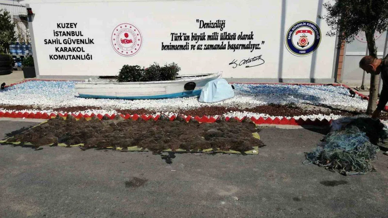 İstanbul'da sahil kenarına balıkçılara yönelik yapılan denetimde, yasadışı kaçak avlanan yarım ton kalkan balığı ve 200 metrelik kalkan ağı el konuldu. 2 kişiye idari para cezası uygulandı.