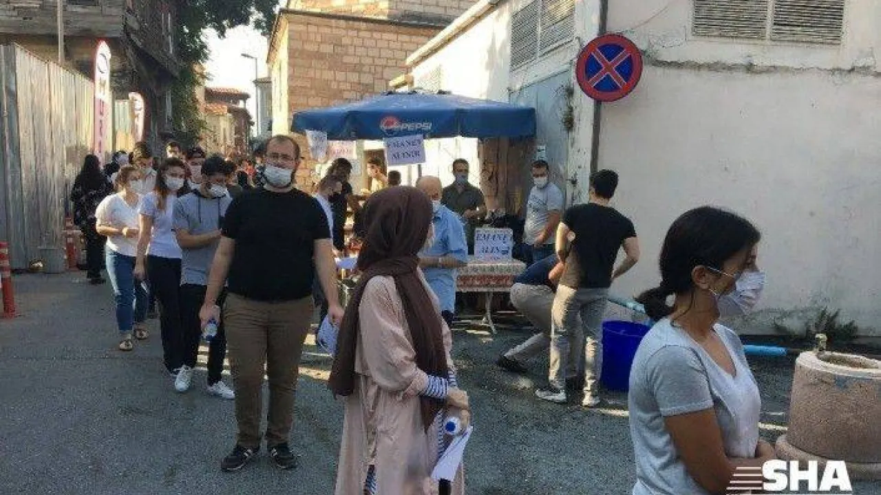 Korona virüs (Covid-19) tedbirleri kapsamında adayların sınavın yapılacağı binaya girişi yapmadan önce ateşlerinin ölçüldüğü ve maske dağıtıldığı gözlendi.