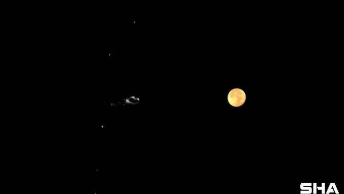 İstanbul semalarında beliren dolunay, İstanbul Boğazı ve Ortaköy Camii ile birleşince eşsiz manzaralar oluşturdu.