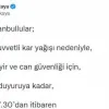 İstanbul Valisi Ali Yerlikaya, "Beklenen kuvvetli kar yağışı nedeniyle, bir sonraki duyuruya kadar, bugün 17.30’dan itibaren Motosiklet Elektrikli scooter ve motokuryelerin, trafiğe çıkışlarına izin verilmeyecektir" dedi.