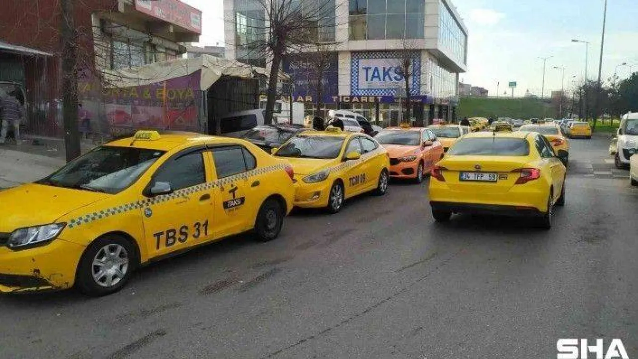 İstanbul’da yeni yıl zammı nedeniyle taksimetrelerini güncellemek zorunda olan taksicilerin Bağcılar’daki servisin önünde oluşturduğu uzun kuyruk devam ediyor.