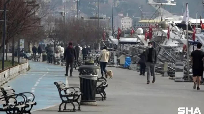 Beşiktaş Bebek sahilinde sokağa çıkma kısıtlamasına rağmen bazı vatandaşlar banklarda otururken, bazılarının ellerinde kahvelerle yürüyüş yaptıkları görüldü. Vatandaşların oluşturduğu kalabalık kameraya yansıdı.