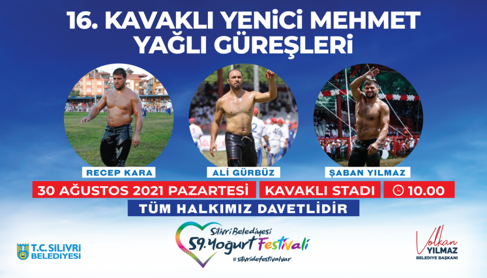 Silivri Belediyesi tarafından düzenlenen 59. Yoğurt Festivali’nde heyecan başladı. 28-29-30 Ağustos tarihleri arasında gerçekleştirilecek olan festivalin etkinlik takvimine göre; festivalde ödüllü turnuvalar ve spor aktiviteleri, geleneksel yoğurt yeme ve yoğurt mayalama yarışmaları, çocuk şenliği, sergiler ve yöresel halk oyunları gösterileri düzenlenecek. Festivalin sahne programlarında ise ünlü sanatçılar Hadise, Koray Avcı ve Turgay Başyayla şarkılarıyla Silivrililer ile buluşacak. Ayrıca festivalin son gününe denk gelen 30 Ağustos Zafer Bayramı’nda “Zafer Yürüyüşü” düzenlenecek. Festival kapsamında gerçekleştirilecek 16. Kavaklı Yenici Mehmet Yağlı Güreşleri’nde ise aralarında 660. Tarihi Kırkpınar Yağlı Güreşleri’nin bu yılki altın kemer sahibi Ali Gürbüz, Recep Kara ve Şaban Yılmaz’ın da yer aldığı 24 başpehlivan ve yaklaşık 350 sporcu er meydanında boy gösterecek.