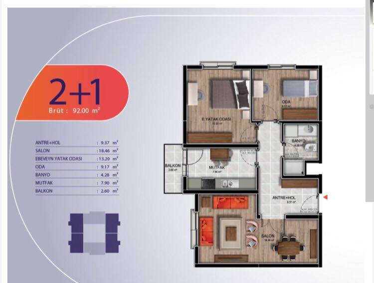 2+1 92 metrekare 195.000TL KAYIT ÜCRETİ 1000TL