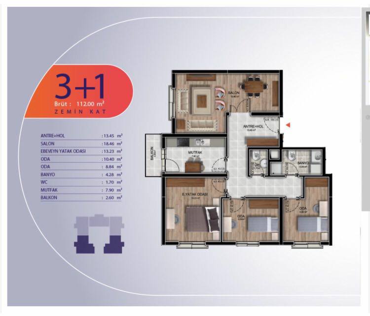 3+1 112 metrekare 215.000TL KAYIT ÜCRETİ 2000TL
