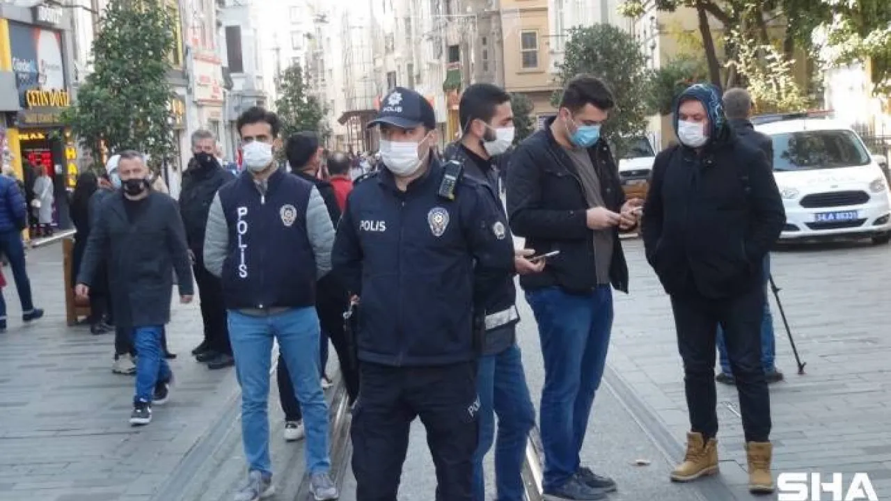 İstiklal Caddesi'nde polis ekipleri, korona virüs önlemleri kapsamında denetim yaparak maske takmayan ve sigara içen kişilere ceza yazdı.