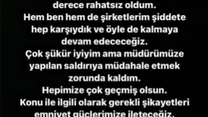 İtalyan şef Danilo Zanna, saldırı olayına ilişkin sosyal medya hesabında yaptığı açıklamada, Çok şükür iyiyim ama müdürümüze yapılan saldırıya müdahale etmek zorunda kaldım. Hepimize çok geçmiş olsun. Konu ile ilgili olarak gerekli şikayetleri emniyet güçlerimize ileteceğiz' dedi.