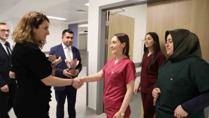 İzmit Belediyesi yöneticileri, 21-28 Nisan Ebeler Haftası dolayısıyla Kocaeli Şehir Hastanesi'nde görev yapan ebeleri ziyaret ederek, haftalarını kutladı.