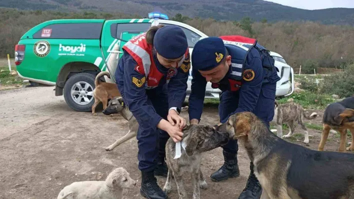Bilecik İl Jandarma Komutanlığına bağlı ekipler sokak hayvanları reflektif tasma taktı.