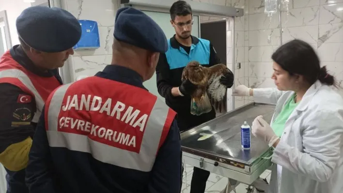 Bursa'da jandarma ekipleri devriye esnasında bulduğu yaralı şahine sahip çıktı.