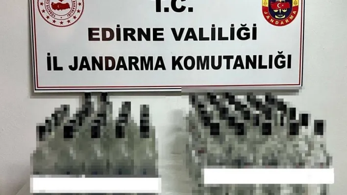 Edirne'de jandarma ekipleri TEM otoyolu gişeler mevkiinde durdurduğu araçta yaptığı aramada 65 şişe kaçak içki ele geçirdi.