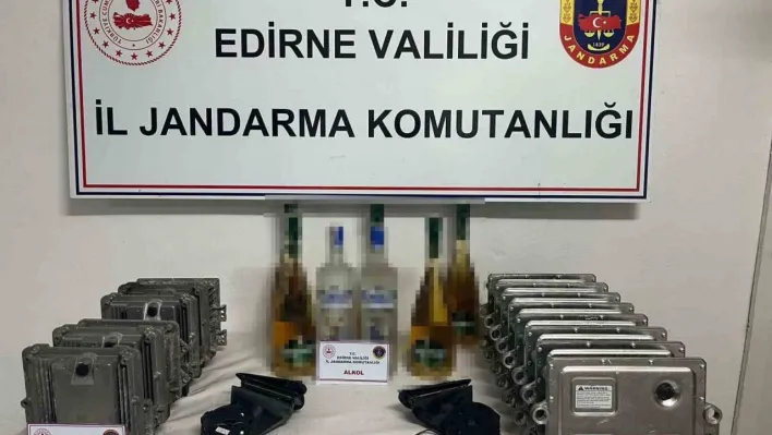 Edirne'de jandarma ekiplerince yol kontrol noktasında bir otomobilde yapılan aramada bagaj ve motor kaput bölümüne gizlenmiş gümrük kaçağı olduğu tespit edilen 13 adet araç beyni, 1 adet araç buzdolabı, 2 adet ayna mekanizması ve 7 litre alkollü içecek ele geçirildi.