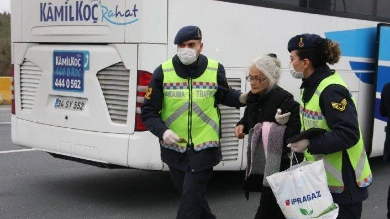 Denetimlerde, seyahat belgesi bulunmayan 65 yaş üstü bir kadın otobüsten indirilerek jandarma tarafından evine bırakıldı.