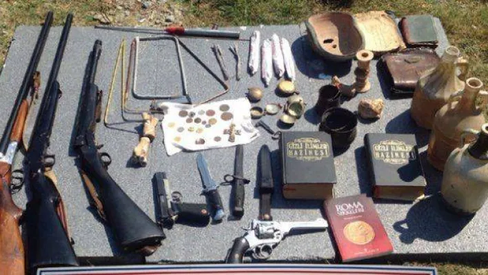 Edinilen bilgilere göre, İstanbul İl Jandarma Komutanlığı 20 Ağustos’ta Çatalca Aydınlar Mahallesi’nde bir şahsın izinsiz kazı yaptığı ihbarı üzerine harekete geçti. Jandarma ekipleri, edinilen bilgilerin üzerine şahsın evini tespit ederek baskın düzenledi. İzinsiz kazı yapan Y.Ü. isimli şüphelinin evinde yapılan aramalarda 3 adet av tüfeği, 1'i kurusıkı 2 adet tabanca, 2 adet 20 santim uzunluğunda bıçak, 18 adet bakır sikke, yaklaşık 10 santim uzunluğunda haç, 5 adet sarı köstekli saat dış kabı, 1 adet eski cezve tarzı ev eşyası, 1 adet kulplu küçük eski tas, 3 adet cam şişe, 2 adet fünye, 4 adet dinamit lokumu, 1 adet topraktan yapılmış kırık tabak, 3 adet parçalanmış halde Arapça yazılı kitap, 1 adet deri kitap çantası, 3 adet kilden yapılmış parça ve 7 adet muhtelif kazı malzemesi ele geçirildi.