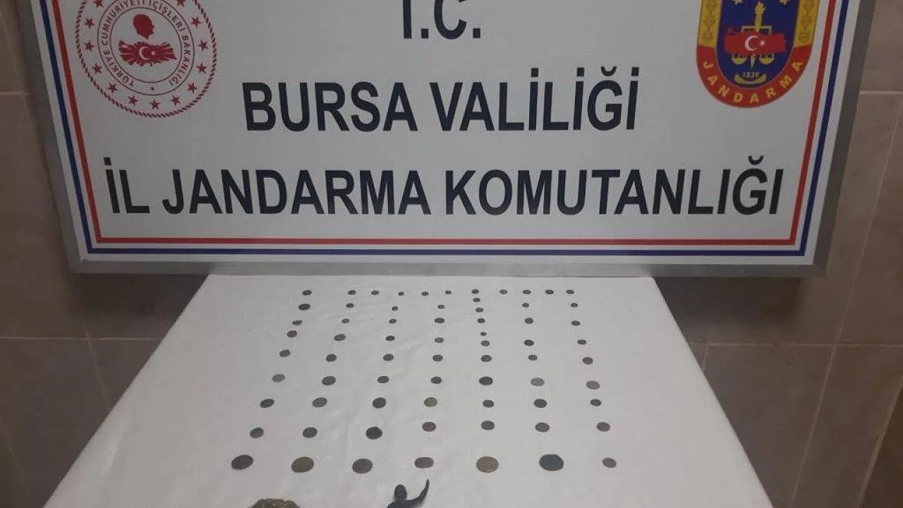 Olay, merkez Nilüfer ilçesi Gölyazı Mahallesi’nde meydana geldi. Edinilen bilgiye göre, jandarma ekipleri Ç.Ö. (47) ve N.Ö. (44) isimli şüphelilerin ellerinde tarihi eser niteliği taşıyan sikkeleri satmak için müşteri aradıkları bilgisine ulaştı. Bunun üzerine harekete geçen ekipler, şüphelilere operasyon yaptı. Yapılan operasyonda Ç.Ö. ve N.Ö.’yi gözaltına alırken, yapılan aramalarda çeşitli dönem ve uygarlıklara ait 68 adet sikke, 1 adet heykel, 1 adet mühür 1 adet haç işareti obje, 1 adet erkek silueti erkek figürü ele geçirildi.
