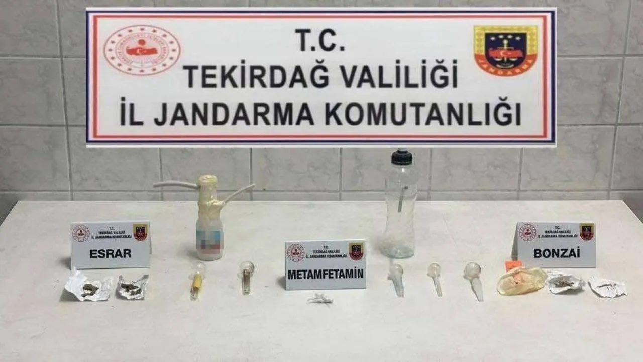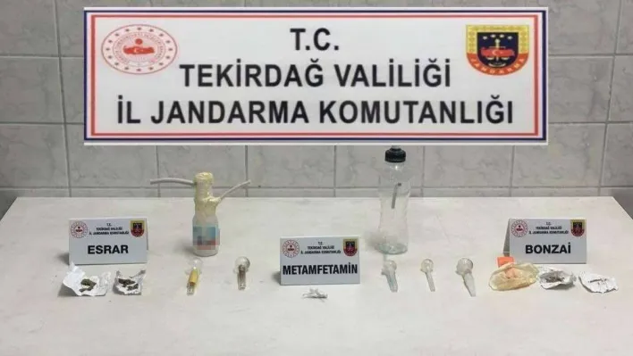 Tekirdağ merkez Süleymanpaşa ilçesi Altınova Mahallesi’nde de R.D. isimli şahsın ikametinde uyuşturucu madde tespit edilmesi üzerine Tekirdağ İl Jandarma Komutanlığı unsurlarınca yapılan aramada; 40 adet sentetik hap, 20 gram metamfetamin, 5 gram bonzai, 3 gram esrar, 1 adet uyuşturucu madde kullanma aparatı ele geçirildi. Şahıs, ifadesi alınmak üzere gözaltına alındı.