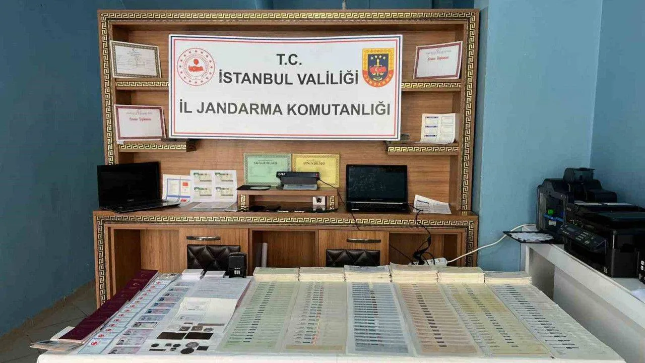 İstanbul İl Jandarma Komutanlığı ekipleri tarafından Ümraniye'de bir işyerine yapılan operasyonda 5 kişi gözaltına alındı. İşyerinde yapılan aramada çeşitli bankalara ait bin 500 sahte çek, 750 eski tip sahte kimlik, 600 yeni tip kimlik basımında kullanılan kart, 800 sürücü belgesi basımında kullanılan kart, 8 sahte pasaport, 34 yeni tip sahte kimlik ele geçirildi.