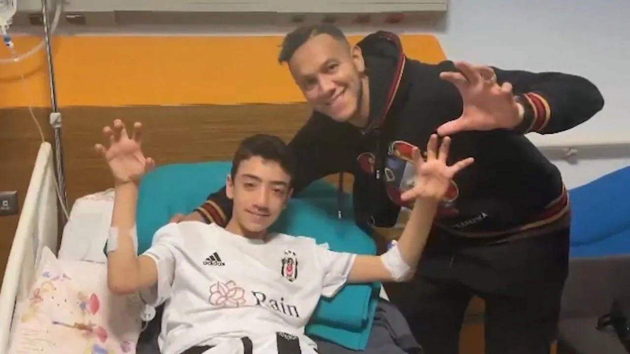 Beşiktaş'ın başarılı futbolcusu Josef de Souza, enkaz altından çıkarılan Arda Can ve Cenk ile bir araya gelerek destek oldu.