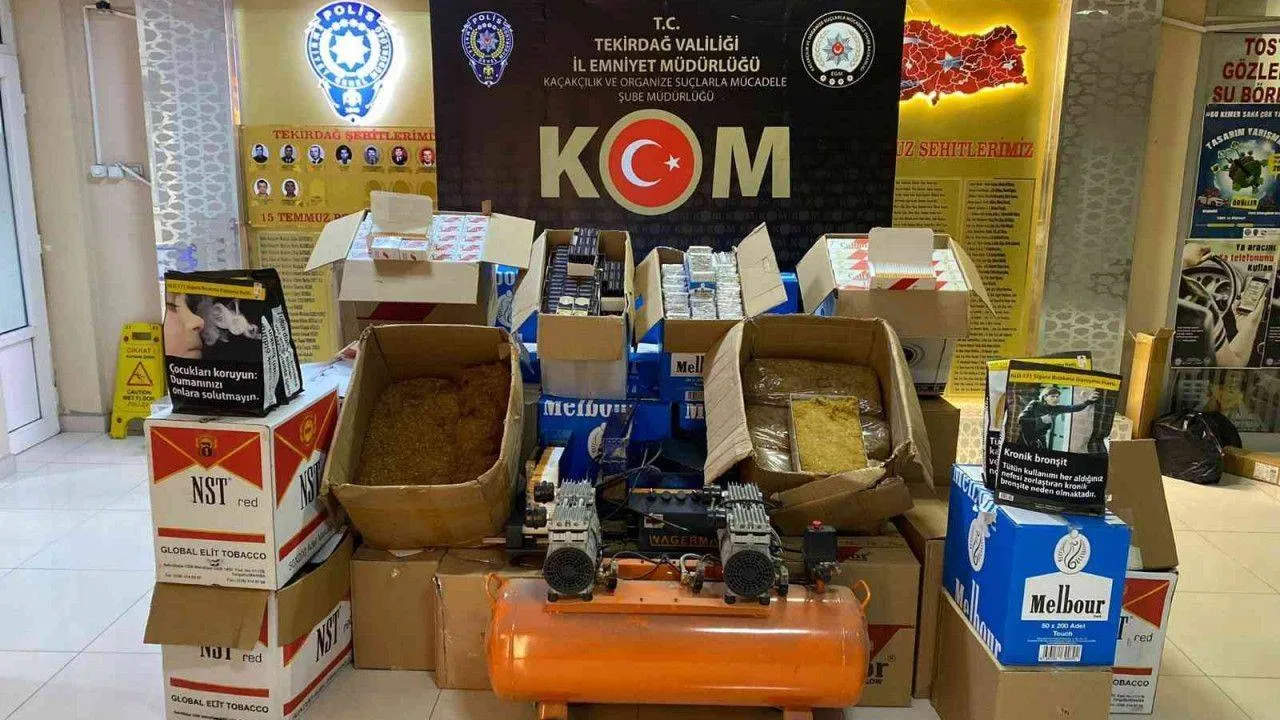 Tekirdağ’da polis ekiplerince sigara imalathanesi ve ikametlerde düzenlenen operasyonda 449 din adet makaron, bin 600 adet bandrolsüz sigara kağıdı ve 96 kilogram tütün ele geçirildi.
