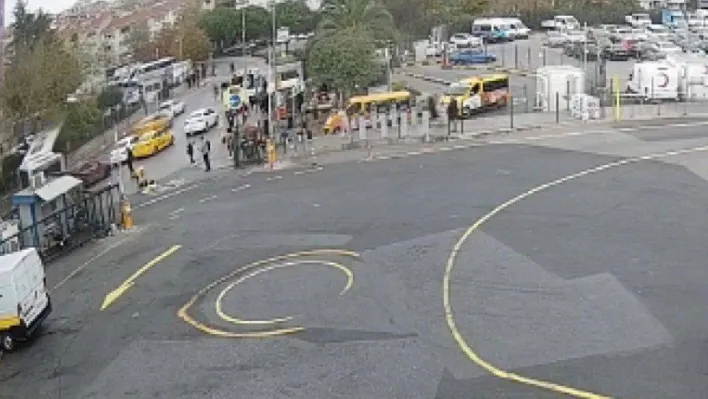 Kadıköy'de perondan dışarı fırlayan bir metrobüs, otomobillerin geçiş yaptığı yolun karşısına geçerek duvara çarptı. Metrobüsün ortalığı savaş alanına çevirdiği kaza güvenlik kamerasına yansıdı.