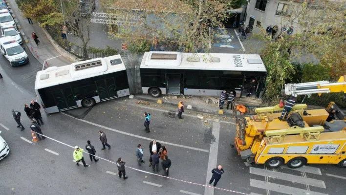 Kadıköy'de metrobüsün perondan çıkarak duvara çaptığı kaza alanı havadan görüntülendi
