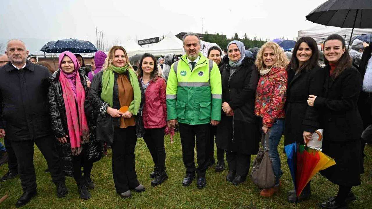 Başkan Aktaş konuşmasının ardından etkinliğe beraberinde katılan Bursa İl Başkanı Davut Gürkan ile birlikte, oluşturulan Kadın Parkı’nda fidan dikimi gerçekleştirdi. Program sonunda günün anısına kadınlara erguvan kolonyası ve sukulent bitkileri de hediye edildi.