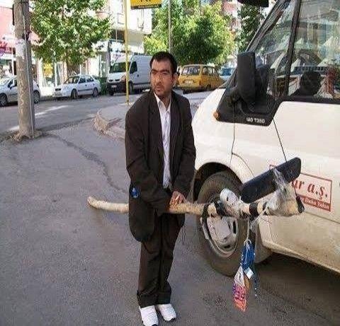 Aklı dengesi yerinde olmayan ve bütün gün üstünde dolaştığı önünde Mercedes arması olan sopayı Mersedes'i zannederek yaşıyor.